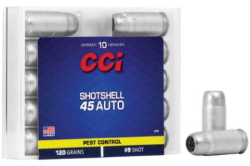Shop CCI Shotshell .45 ACP 120gr Ammunition 10-Rounds at Botach. Reliable and potent, perfect for close range pest control. New production and non-corrosive.